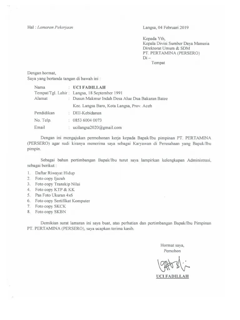 Contoh surat lamaran kerja hotel yang benar dan terbaru.